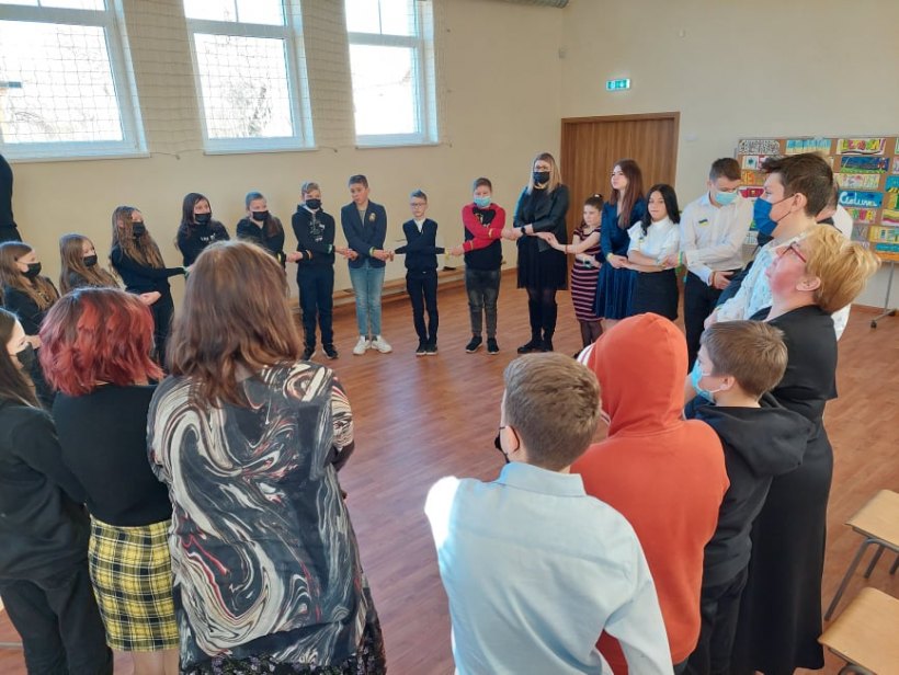 Šiais metais Lietuvos gimtadienio šventimas skyrėsi nuo ankstesnių, nes visa mokyklos bendruomenė vieningai tylos minute pagerbė žuvusius Ukrainos žmones, prisijungdami prie Ukrainos palaikymo iniciatyvos #Šlovėukrainai ir pilietinės iniciatyvos ,,Gyvasis tautos žiedas“ supynė laisvės apyrankę ir subūrė vientisą mokinių ir mokytojų žiedą.