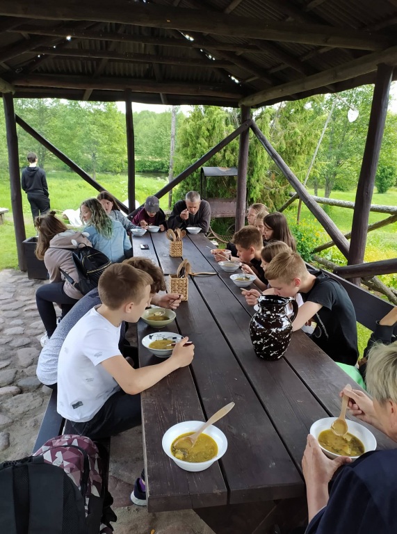 Birželio 17 dieną 5 ir 6 klasės mokiniai vyko į edukaciją „Grikio kelias“. Apsilankėme kaimo turizmo sodyboje „Grikucis“, įsikūrusią Varėnos rajone, Pamerkių kaime, nepaprastai gražioje vietoje prie Merkio upės, šalia pušyno. Sodyboje vaišinomės grikių žiedų arbata, pyragu su uogiene. Susipažinome su senoviniais dzūkų darbo įrankiais. Mokiniai patys spragilu kūlė grikius, malė juos senovinėmis girnomis, sijojo miltus, maišė tešlą, o vėliau kepė ir ragavo grikinius blynus. Ragaudami grikinių patiekalų išgirdome įdomių šeimininkų pasakojimų. Sodyboje mokinių laikė ir smagūs žaidimai.