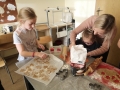 Mokiniai ne tik sužinojo, kokių produktų reikia, kad iškeptume taip skaniai kvepiančius sausainius, bet ir patys svėrė produktus, maišė ir kočiojo tešlą, spaudė įvairias formeles, dėjo sausainius į skardą ir kantriai laukė, kol iškeps. Pravėsusius sausainius dekoravo spalvotu glajumi.