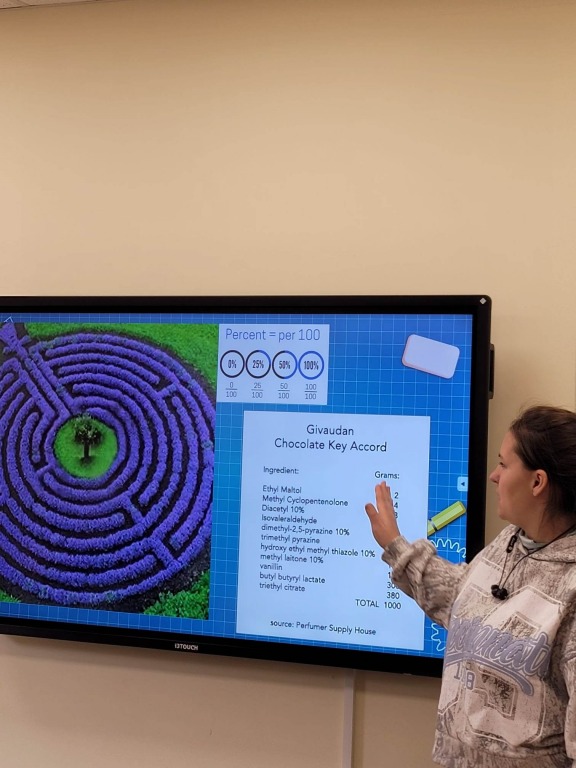 Mokiniai susipažino su kvapų meno istorija, niuansais skirtingose kultūrose, kūrybine aplinka, medžiagomis ir kilme, milžinišku matematikos vaidmeniu kuriant tokio tipo meną. Patys lankstė origamius ir susikūrė unikalų kvapą, paremtą matematiniais skaičiavimais.