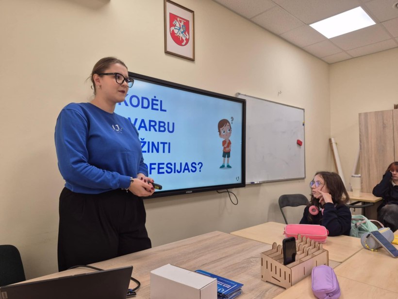 7–8 klasių mokiniams skirta tema „Ateities kūrėjai: kokias profesijas rinksis rytojus?“ supažindino su būsimomis profesijomis ir įgūdžiais, reikalingais sparčiai besikeičiančiame pasaulyje. Pamokos pabaigoje mokiniai dalyvavo smagiame Kahoot žaidime bei gavo dovanų.