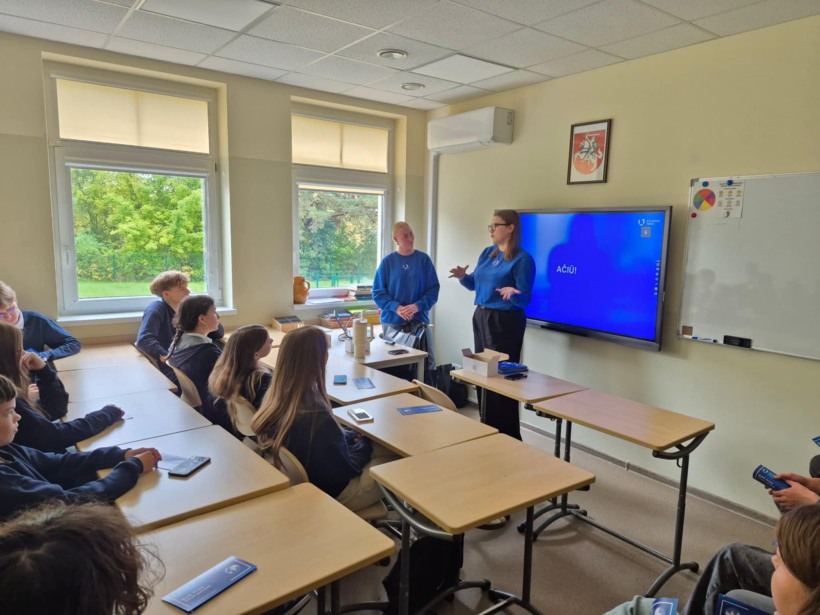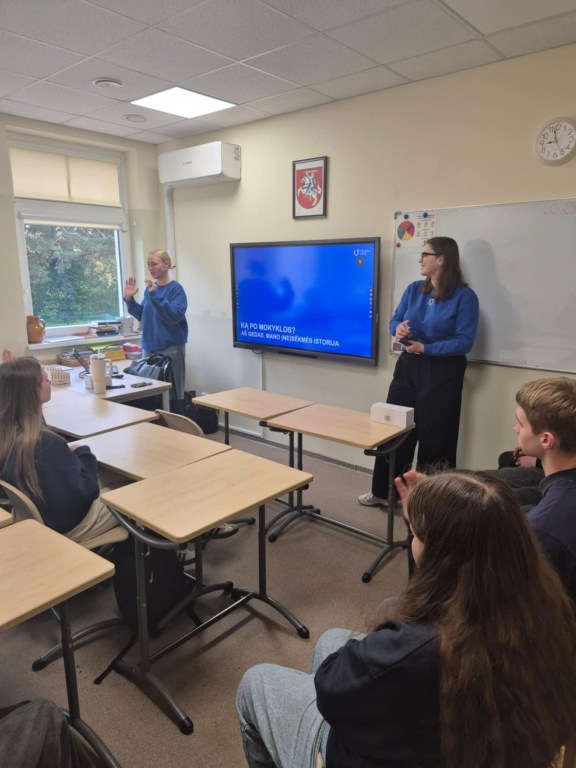 Spalio 7 d. mūsų mokykloje lankėsi Vilnius Tech universiteto studentės, kurios pravedė įkvepiančias pamokas 7–10 klasių mokiniams.