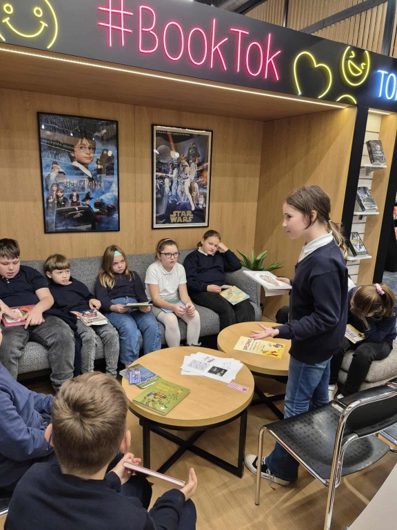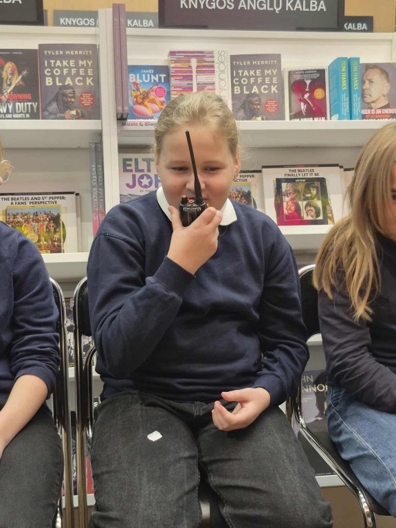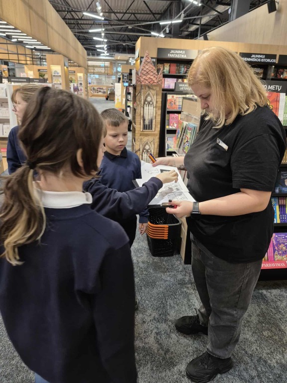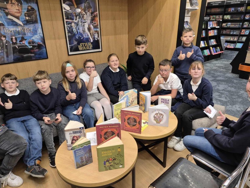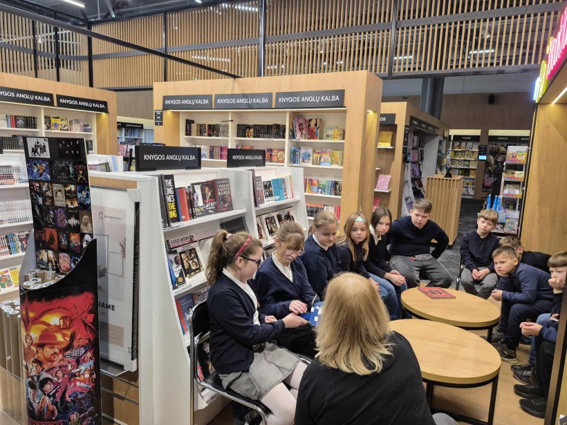 Mokiniai ne tik pristatinėjo savo mėnesio perskaitytas knygas, bet ir susipažino su knygyno konsultanto profesija. Linkime visiems nukeliauti į edukaciją „Knygyno paslaptys“.