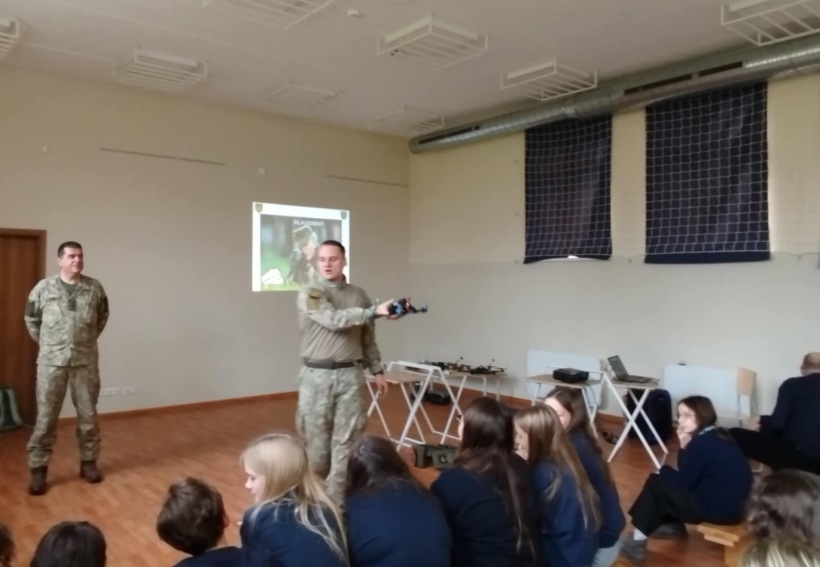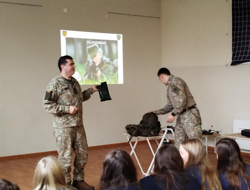 Minint Lietuvos kariuomenės dieną mūsų mokykloje lankėsi ypatingi svečiai – Lietuvos kariuomenės atstovai. Jie 5–10 klasių mokiniams papasakojo apie kariuomenės misiją, viziją, kario savanorio tarnybą, civilių ir karių bendradarbiavimą. Mokiniai turėjo galimybę pažiūrėti trumpą filmuką apie kariuomenės kasdienybę ir veiklas.