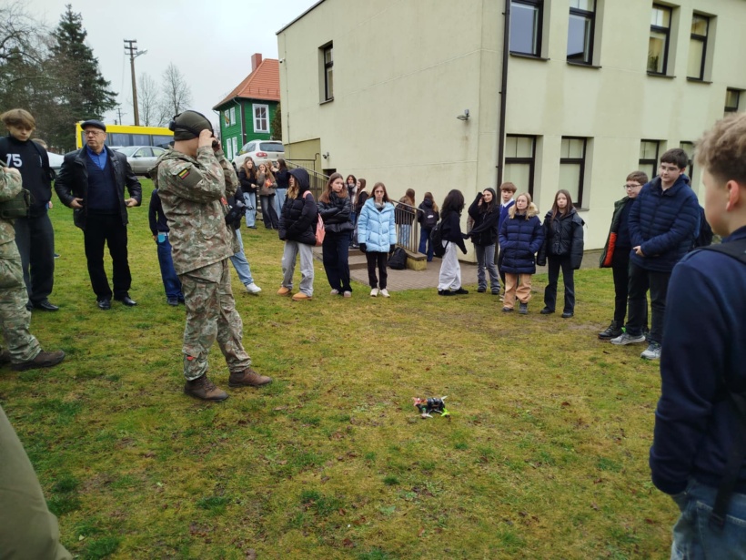 Po pristatymo laukė dar daugiau įdomybių. Vaikai galėjo iš arti pamatyti kariuomenėje naudojamas priemones, kokį maistą valgo kareiviai, apžiūrėti dronus. Daugelis su įdomumu pasimatavo kareivišką aprangą. Galiausiai visi susirinko mokyklos kieme, kur turėjo galimybę stebėti įspūdingą drono skraidinimą.