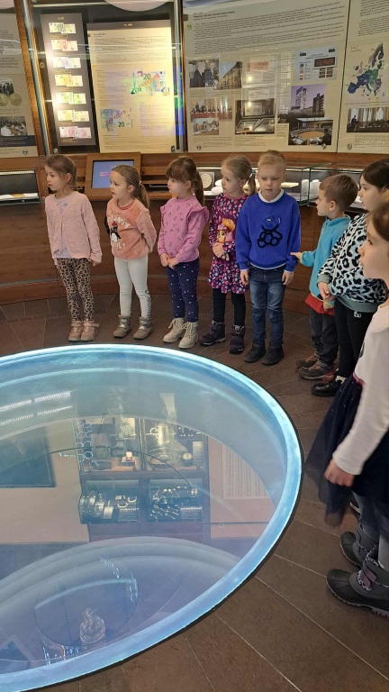 Vėliau priešmokyklinukai susipažino su eurų banknotais ir monetomis. Muziejuje jie sužinojo, kad popierinių banknotų yra 7, metalinių 8, kuo banknotai ypatingi.