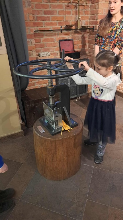 Vienas įdomiausių ir daugiausiai emocijų sukėlusių užsiėmimų buvo suvenyrinės plokštelės kalimas. Kiekvienas vaikas galėjo pats pasukti specialų aparatą ir pasigaminti savo plokštelę – unikalų prisiminimą iš muziejaus. Ši užduotis suteikė daug džiaugsmo ir leido pasijusti tarsi tikriems meistrams.