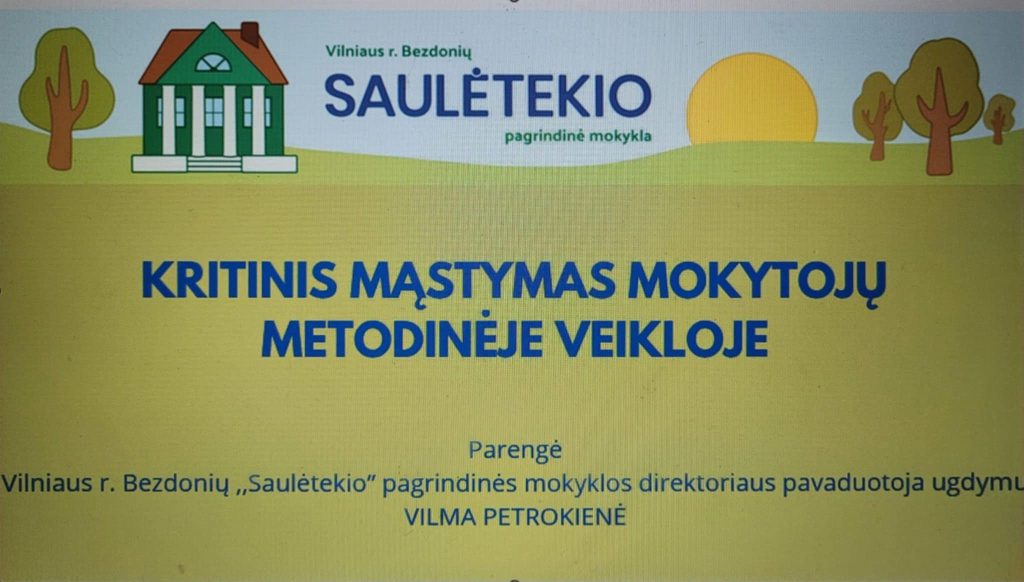 Visus 2025 metus Mykolo Romerio universitete vyko ,,Pavaduotojų akademija 2025“, kurią organizavo Vilniaus rajono savivaldybė. Mūsų mokyklos direktoriaus pavaduotoja ugdymui sėmėsi žinių kritinio mąstymo, teisinių aktualijų, dirbtinio intelekto panaudojimo ir kitomis temomis, o gruodžio 3 d. baigiamajame renginyje Glitiškių dvare pati skaitė pranešimą apie mokyklos veiklą ,,Kritinis mąstymas mokyklos mokytojų metodinėje veikloje“.