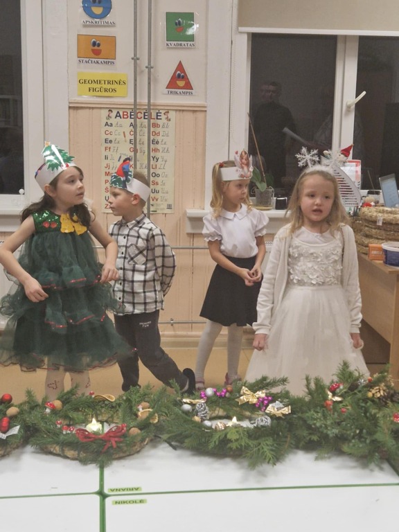 Vėliau vaikai pristatė trumpą, tačiau labai šiltą vaidinimą apie Kalėdų laukimą. Mažieji aktoriai nuoširdžiai perteikė advento prasmę – susikaupimą, gerumą ir bendrystę. Tėveliai su didžiuliu džiaugsmu ir pasididžiavimu stebėjo savo atžalas scenoje.