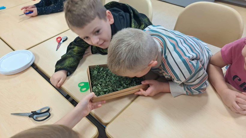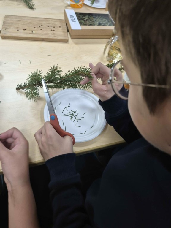 Praktinėje dalyje vaikai tyrinėjo įvairias žoleles: uostė, lygino lapelius, stebėjo spalvas ir susipažino su jų paskirtimi. Žolininkės padedami mokiniai pasigamino šiltos, natūraliais aromatais kvepiančios arbatos ir išbandė, kaip skirtingos žolelės dera tarpusavyje.