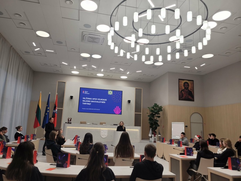 Gruodžio 18 dieną 8–10 klasių mokiniai vyko į Vilniaus rajono savivaldybę. Ten jų laukė jaunimo reikalų koordinatorius Ernestas Stelmach, vicemerė Edita Tamošiūnaitė, Vilniaus rajono savivaldybės tarybos narė Karolina Petrusevič. Mokiniams buvo pristatyta Vilniaus rajono savivaldybės tarybos veikla, jaunimo reikalų veikla rajone ir Vilniaus rajono įdomios vietos.