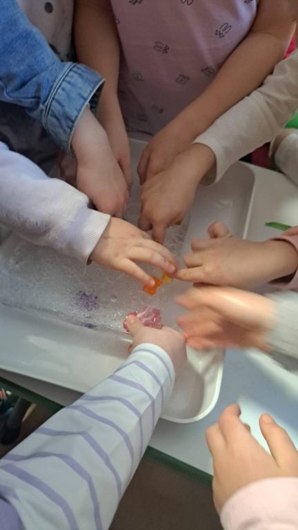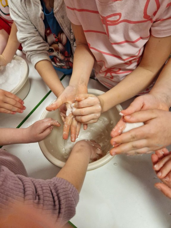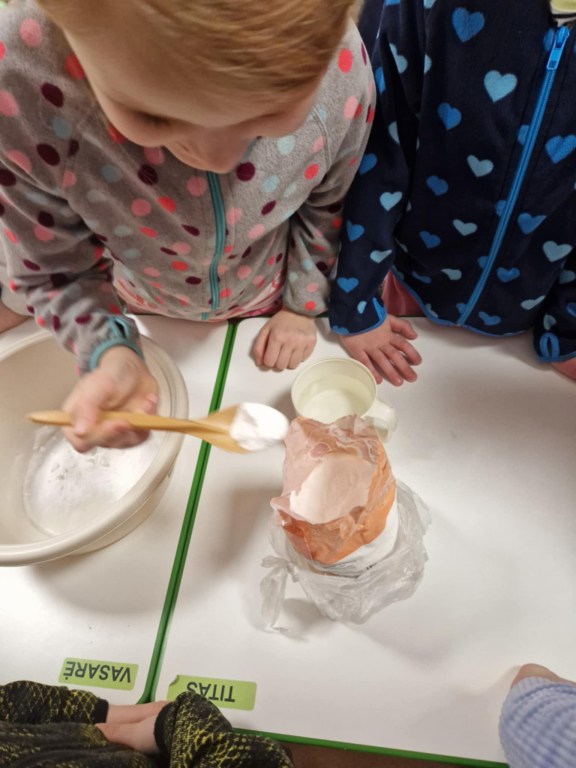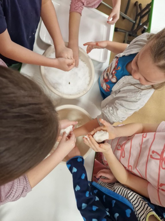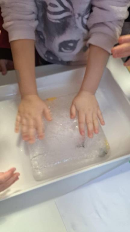 Priešmokyklinio ugdymo grupėje šią savaitę buvo organizuota STEAM sniego, ledo laboratorija.