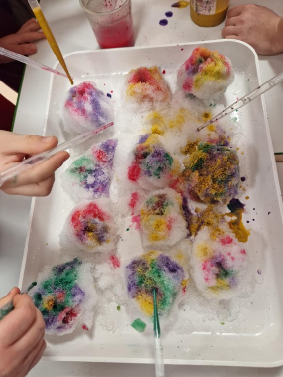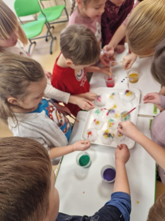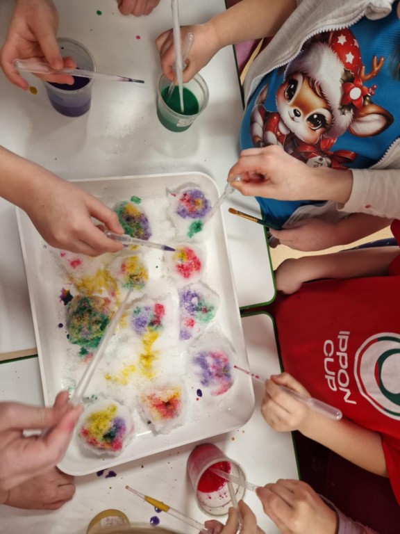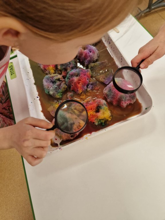 – Sniego spalvinimas (meninės STEAM veiklos).