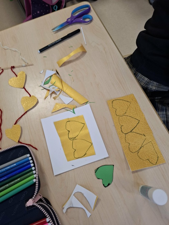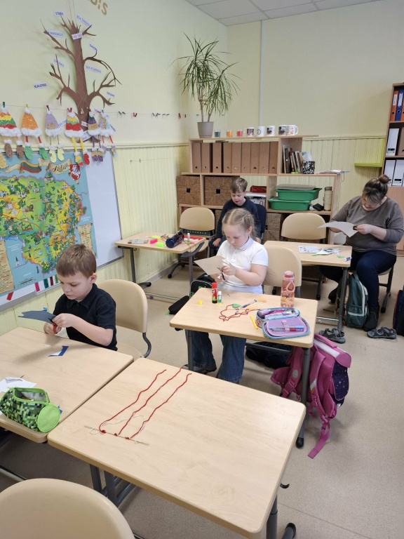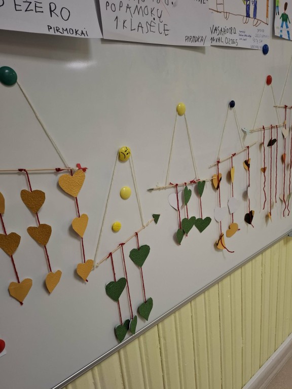 Vasario 12 dieną 1 klasės mokiniai leidosi į nuotolinę kelionę po „Žaliojo taško“ organizuotą edukaciją „Žaliasis raštingumas“. Jos metu vaikai ne tik sužinojo apie atsakingą pakuočių atliekų tvarkymą, bet ir kūrybiškai pritaikė įgytas žinias – iš antrinių žaliavų pasigamino Valentino dienos dekoracijas.