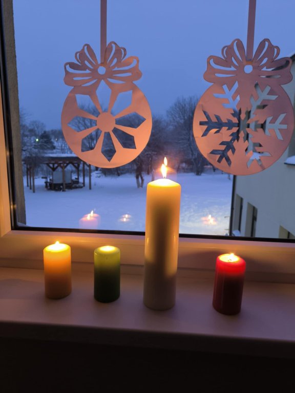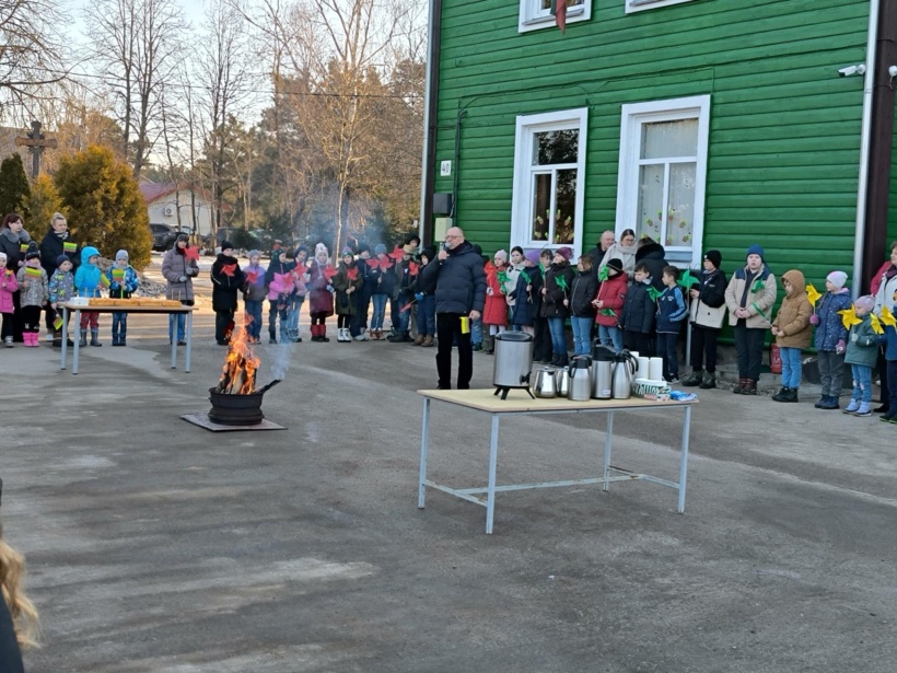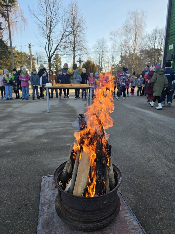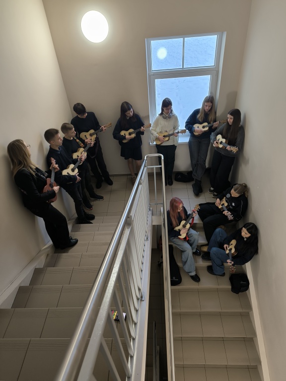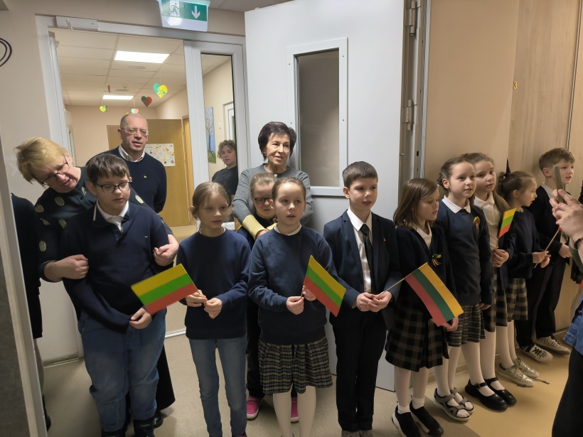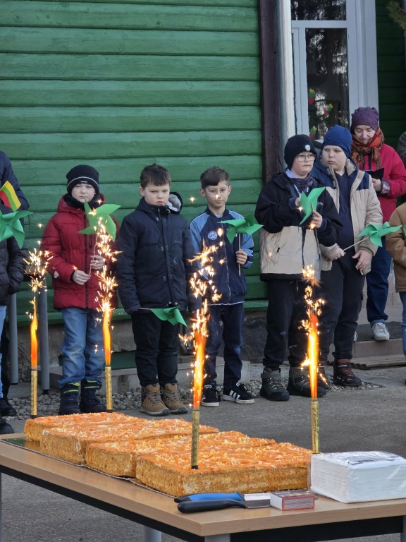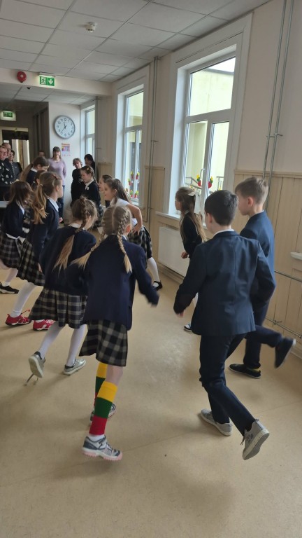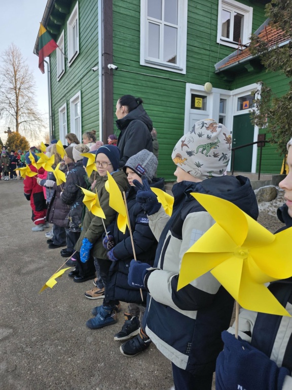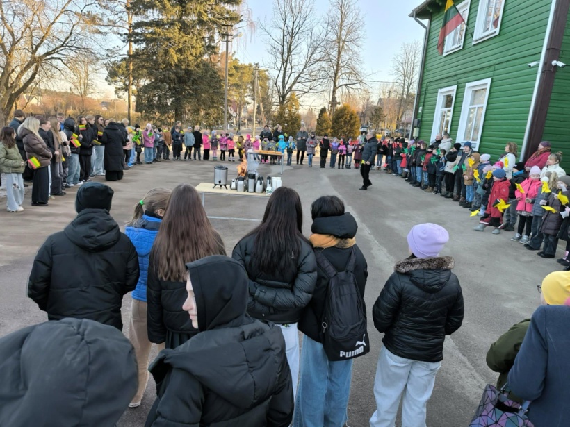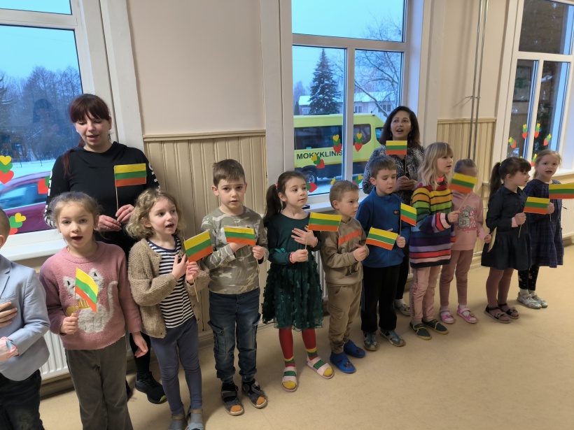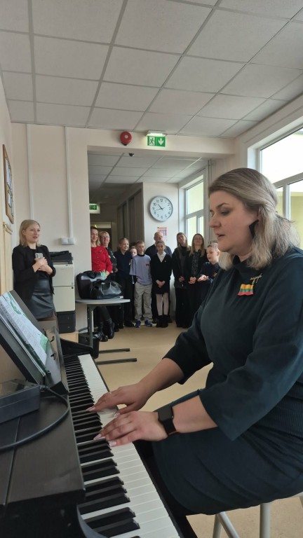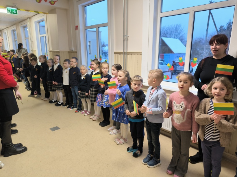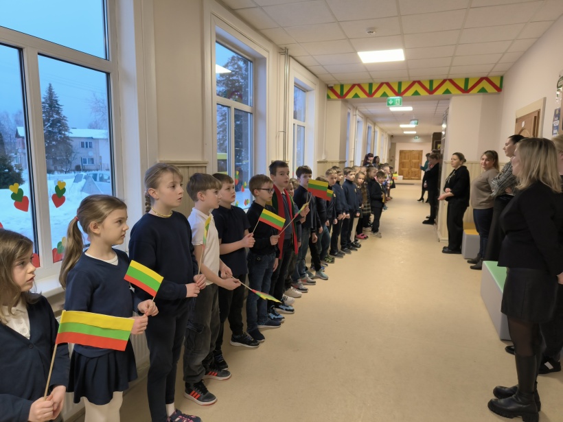 Minint Lietuvos valstybės atkūrimo dieną, Vasario 16-ąją, šiais metais įvairios mokyklos erdvės pertraukų metu suskambo mokinių balsais. Skambėjo populiarios dainos apie Tėvynę, jos nuostabią gamtą ir žmones. Visus šventiškai nuteikė puikiai ukulėlėmis grojantys 5 ir 8 klasės mokiniai. O kas norėjo ne tik skambių dainų paklausyti, bet ir liaudišką polkutę sutrypti, tai galėjo padaryti kartu su pradinių klasių mokinukais ir mokytojomis.