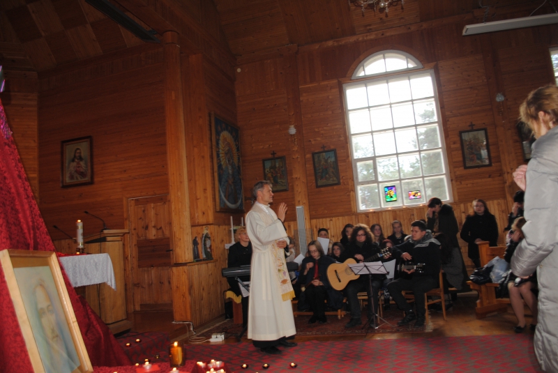 2013 m. lapkričio 28 d. Bezdonių Švč. Mergelės Marijos Aušros Vartų Gailestingumo Motinos bažnyčioje vyko Dievo šlovinimo pamaldos – Taizė.